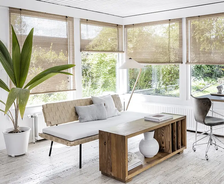 Our roller blinds are made of bamboo, plants and other durable materials. We only work with natural materials. Our roller blinds comes in different designs, colours, structures and transparency levels.