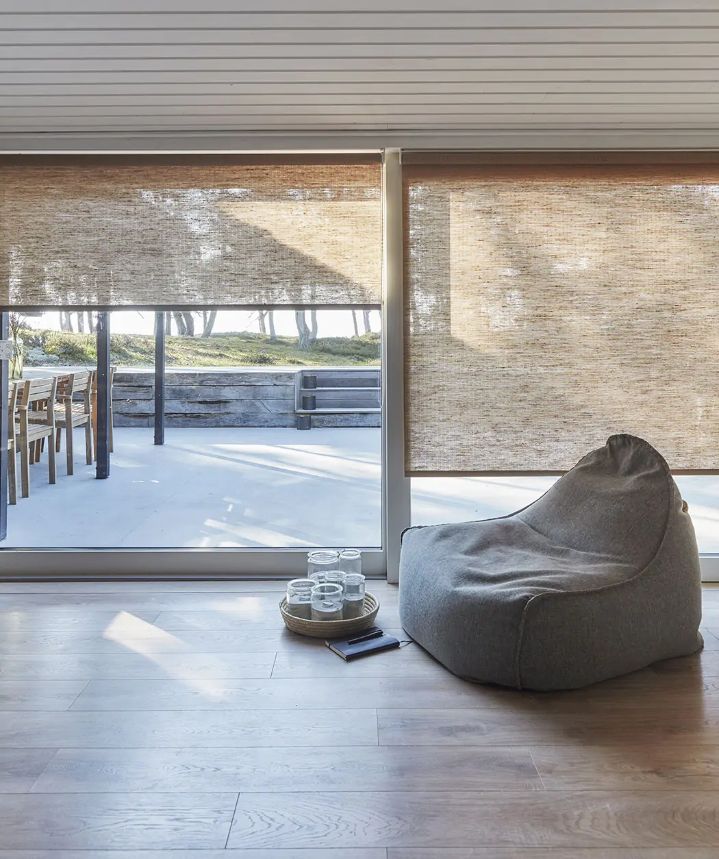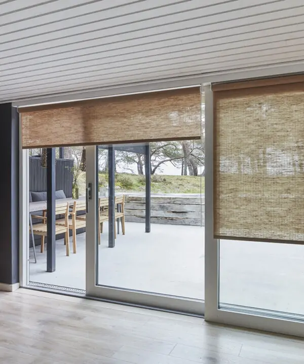 This brown plant roller blind, with chain pull has a sunlight blocking factor of approximately 75%. Our blinds are divided into four categories according to how much sunlight we assess they block: 25%, 50%, 75%, 90% and 98%. We recommend ordering a sample as this is based on an individual evaluation. You can order a free sample here.