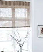 This brown plant striped roller blind has a sunlight blocking factor of approximately 50%. Our blinds are divided into four categories according to how much sunlight we assess they block: 25%, 50%, 75% and 98%. We recommend ordering a sample as this is based on an individual evaluation. You can order a free sample here.