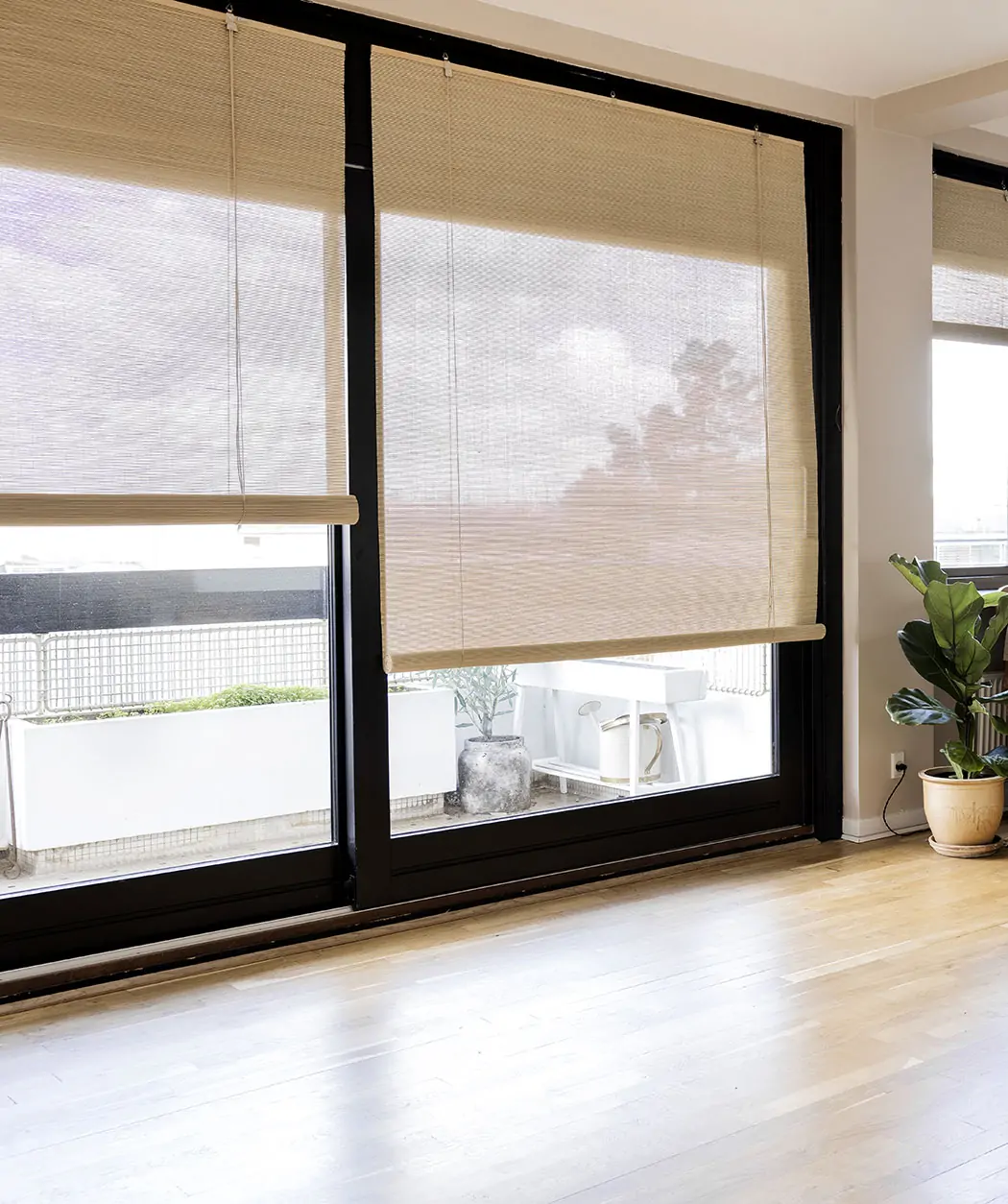 This light bamboo roller blind has a sunlight blocking factor of approximately 75%. Our blinds are divided into four categories according to how much sunlight we assess they block: 25%, 50%, 75% and 98%. We recommend ordering a sample as this is based on an individual evaluation. You can order a free sample here.