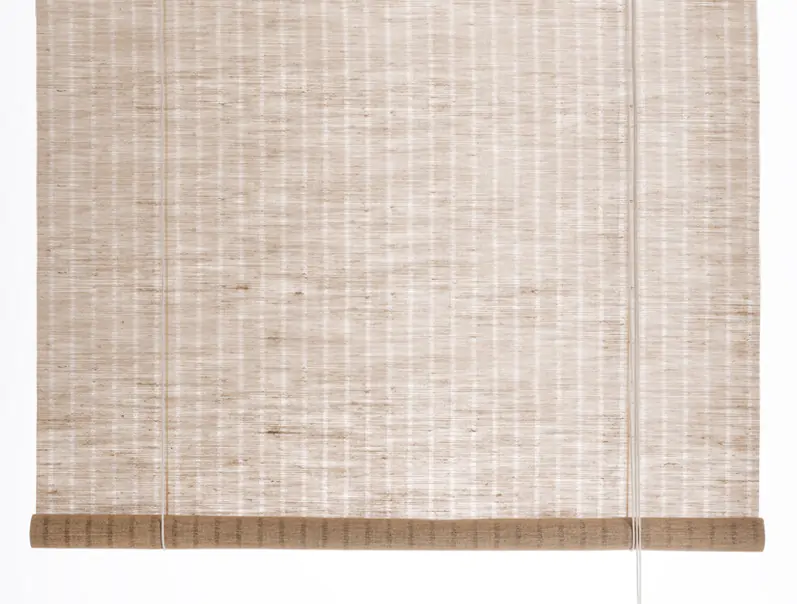 Warm brown plant with a cord pull rollerblind. This beautiful and natural roller blind is woven with white threads and jute yarn sourced from the jute plants stalk. The weave forms a delicate, vertically striped pattern that shifts in appearance depending on light and shadow. The white-striped sections are approximately 2 cm wide, while the jute segments measure about 6 mm. This design has a slightly warmer tone compared to our Brown Plant design, with wider stripes on the fabric. The blind lends a stunning and natural aesthetic to the home, creating warmth and cosiness in every room.